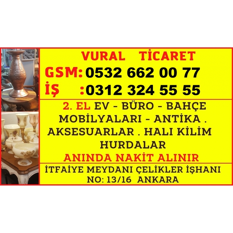 İsterseniz hemen ev bahçe mobilyalarınızın, antika, halı kilim ve ev aksesuarlarınızın resimlerini bize whatsapp ile gönderin ve fiyatlandıralım, anlaşalım, eşyanızı yerinizden nakit gelip alalım.