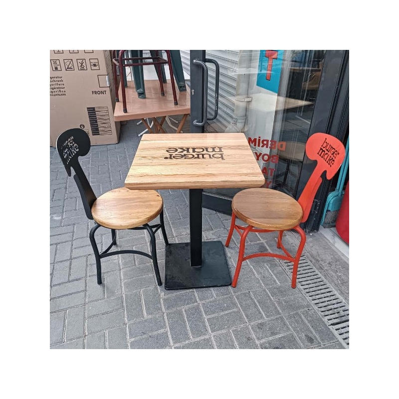 Modern ve sağlam yapısıyla dikkat çeken, ahşap masa ve metal ayaklı sandalyelerden oluşan 15 takım masa sandalye seti. Kafe, restoran ve burger konseptli işletmeler için idealdir.